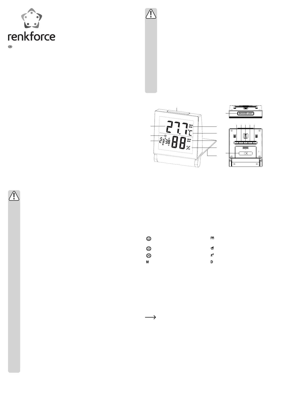 8 Humidity (%) 16 SNOOZE button (snooze function)
