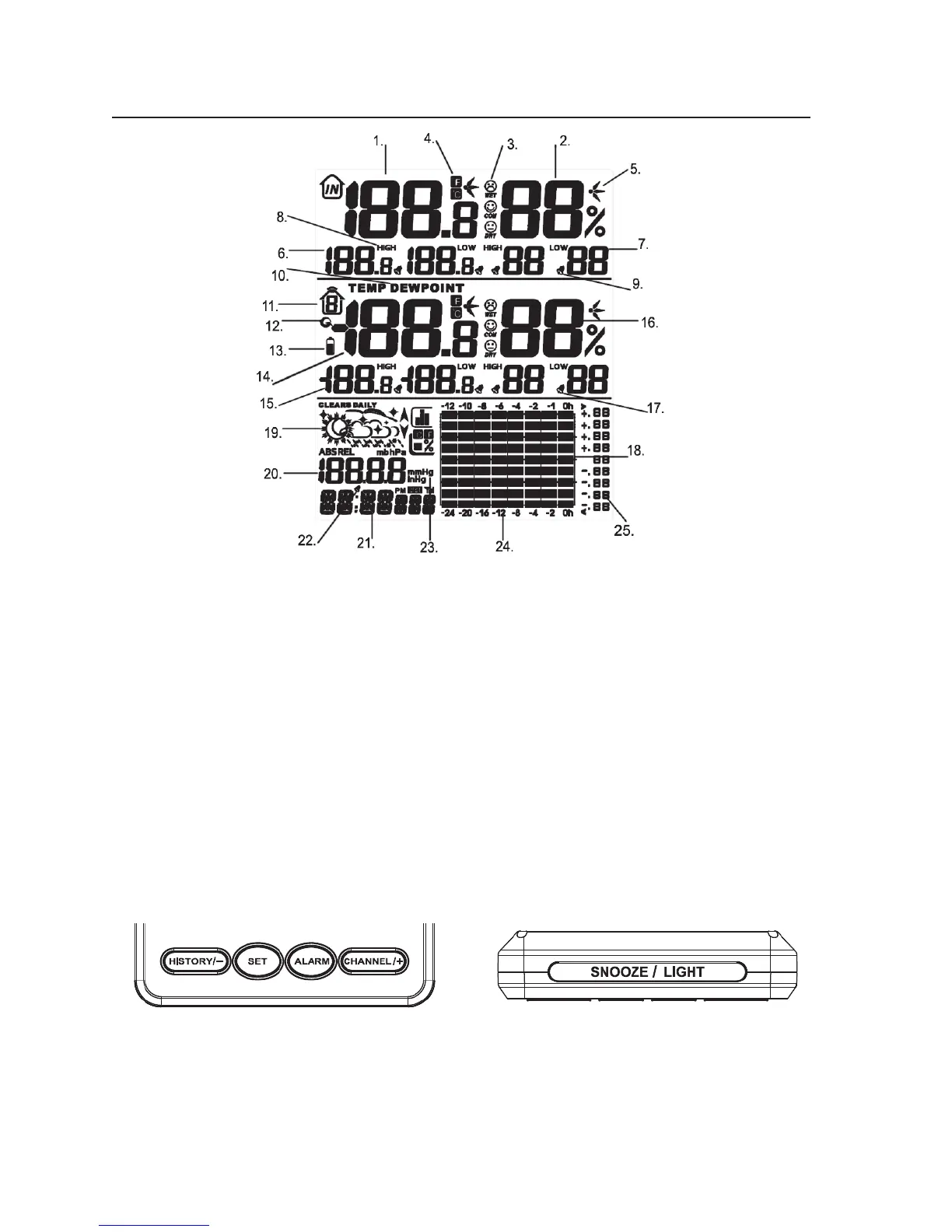 “HISTORY/-” button “SNOOZE/LIGHT” button