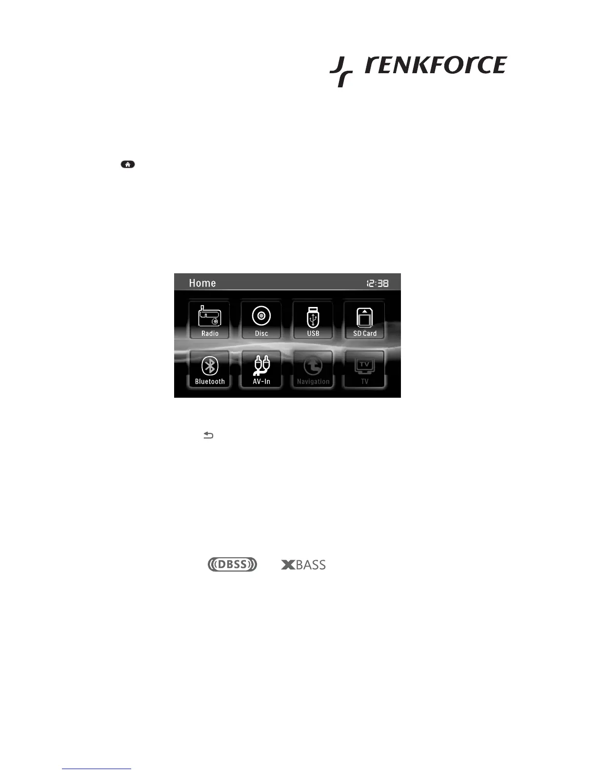 • Von hier aus werden die verschiedenen Quellen wie Radio, Disc, USB etc. gewählt