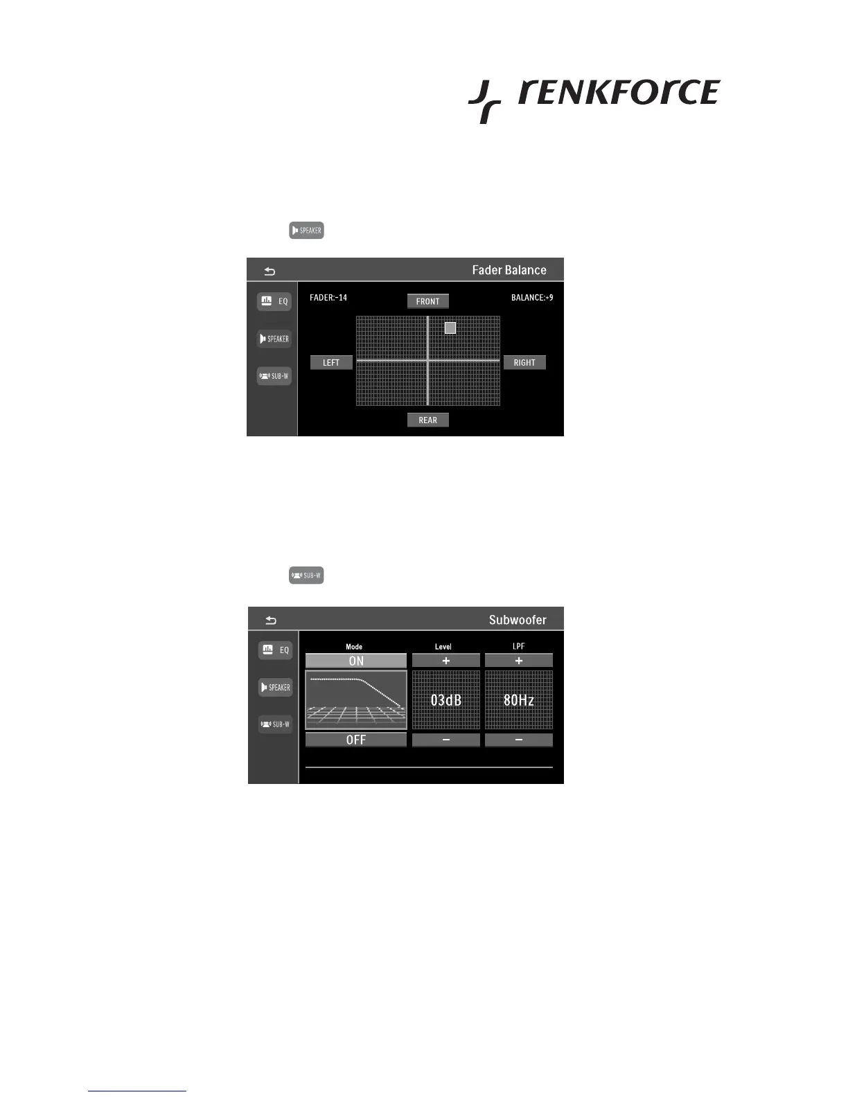 • Die Schaltflächen FRONT / REAR und LEFT / RIGHT stellen das Lautstärkeverhältnis von vorderen zu hinteren