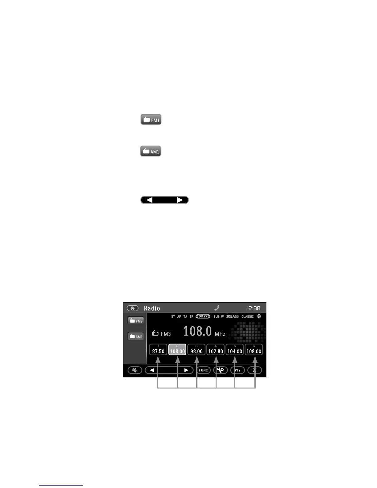 • Mit jeder Berührung wird ein anderer UKW-Bereich FM1 > FM2 > FM3 gewählt.