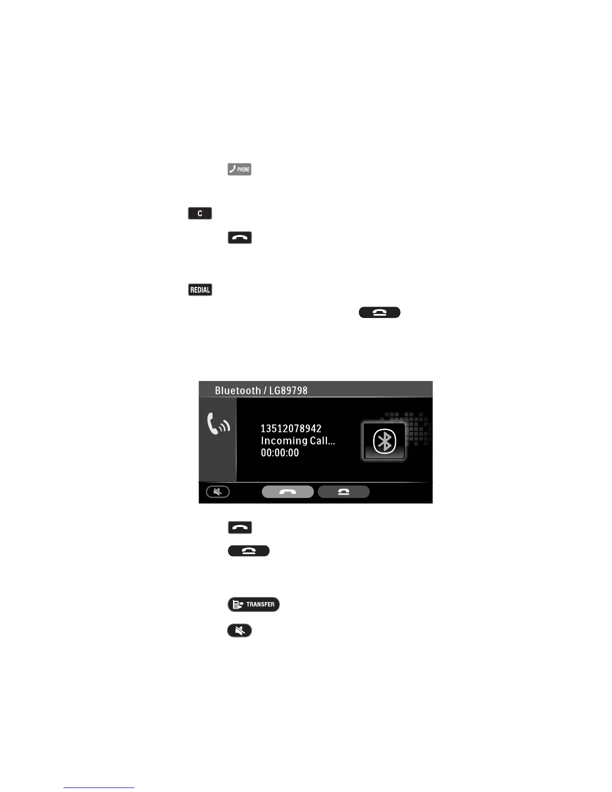 • Bei einem eingehenden Telefongespräch erscheint folgender Bildschirm: