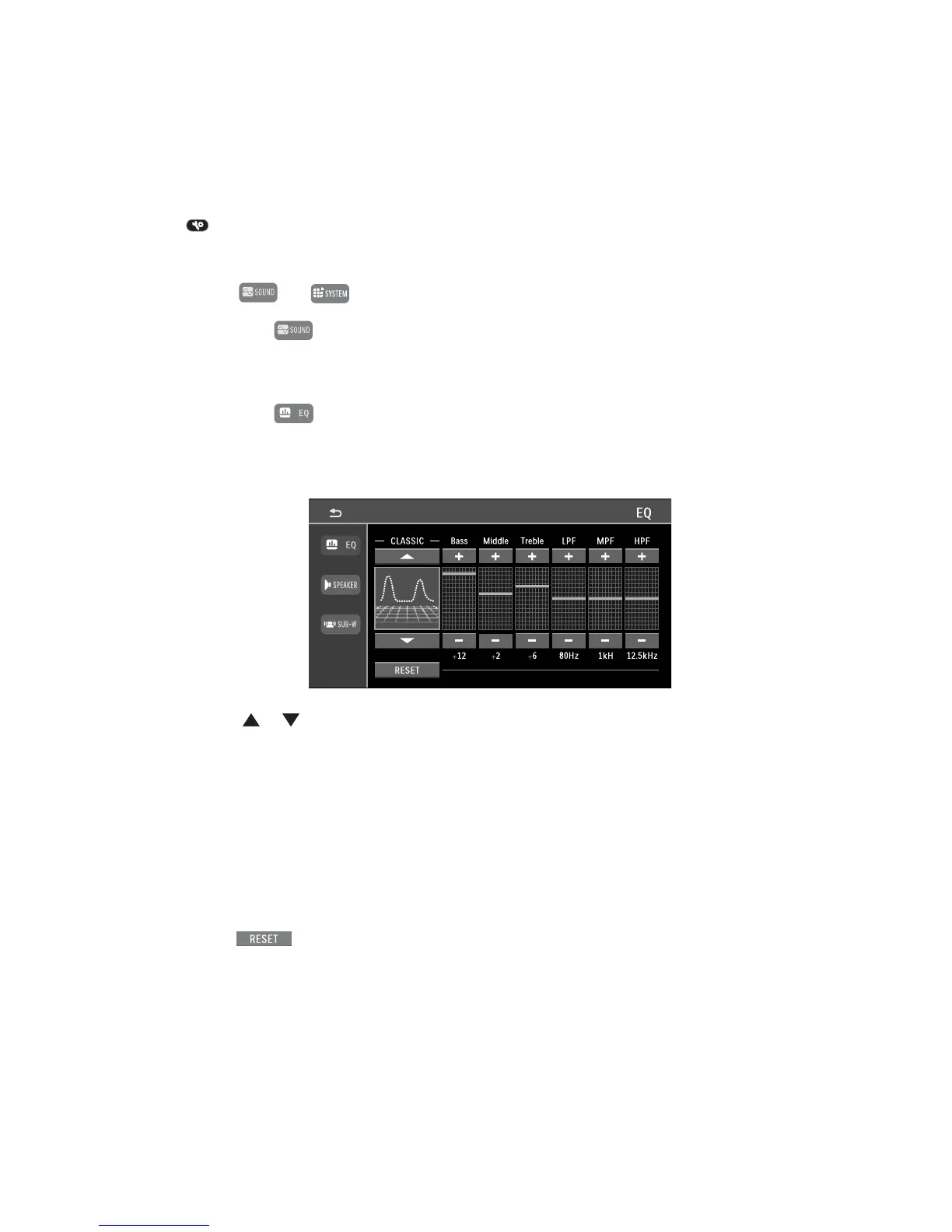 • The buttons or select the equalizer pre-settings: