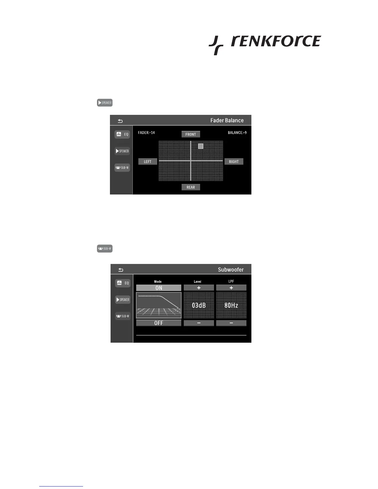 Fader/balance settings