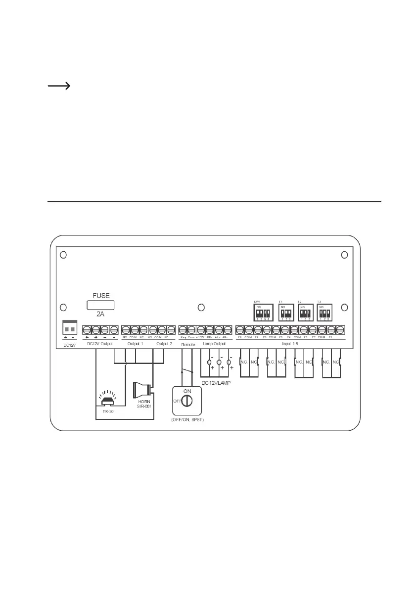 • Éteinte : la zone d’alarme correspondante n’est pas armée (mode NC, état normal)