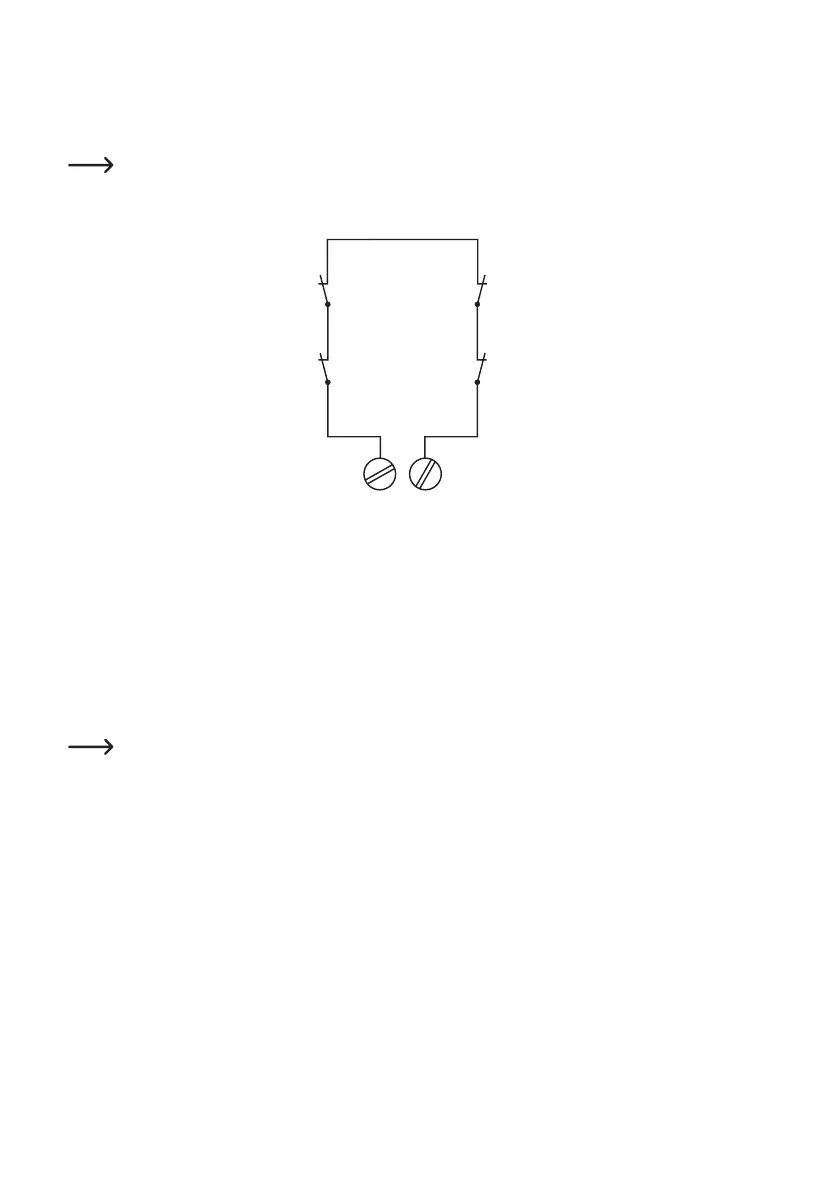 Ce croquis montre un exemple de raccordement des détecteurs avec les contacts NC.