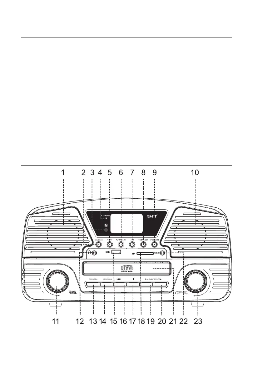• Tourne-disque avec mise à l’arrêt automatique en fin de course et 3 vitesses de lecture (33 1/3, 45 et