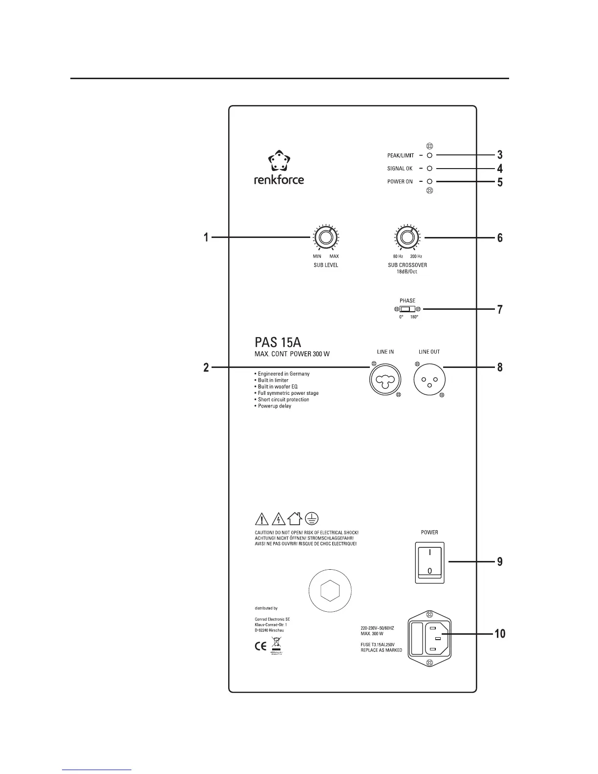 Renkforce PAS15A - Aansluitingen En Bedieningselementen