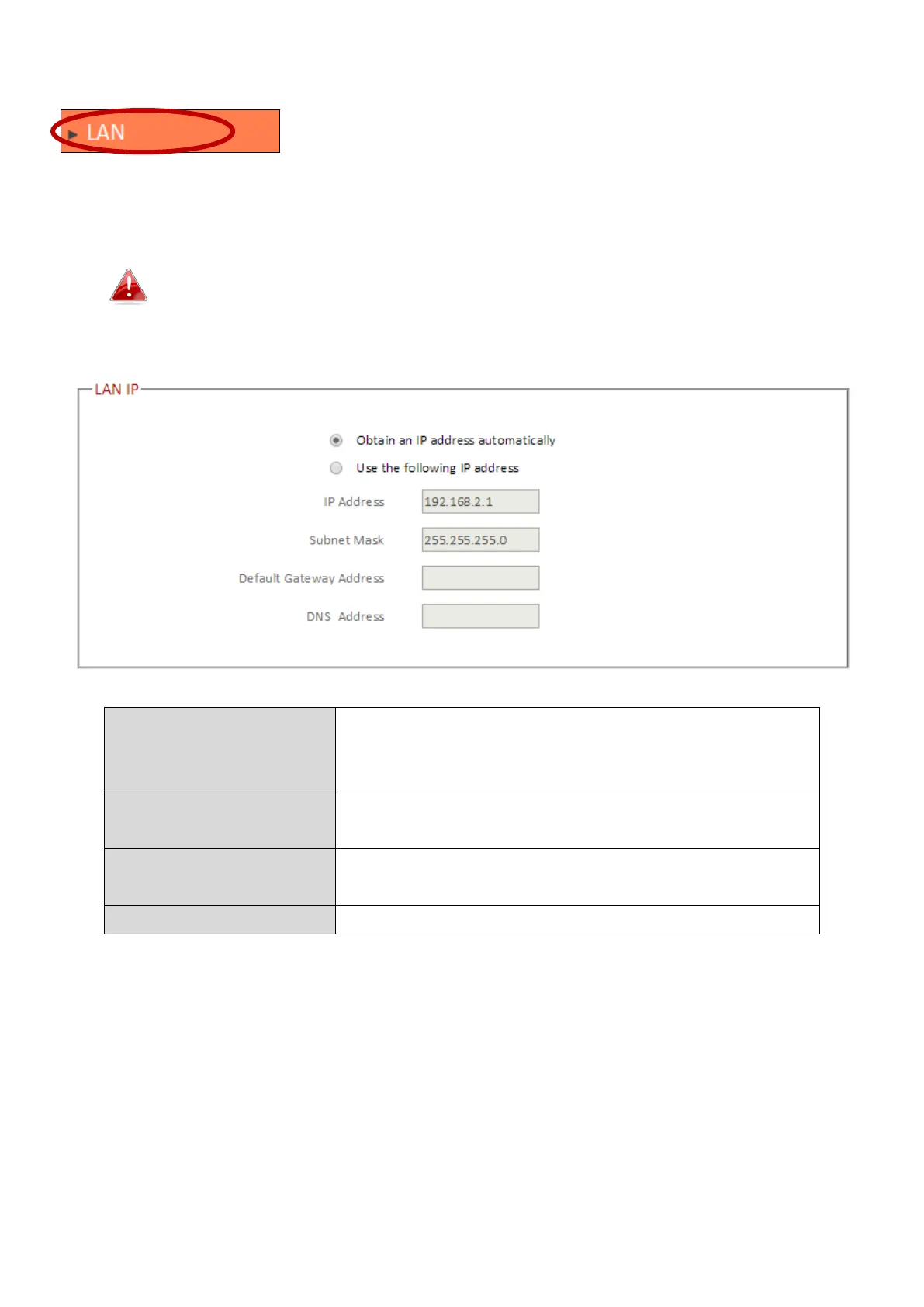 You can configure your Local Area Network (LAN) on this page. Set the device to