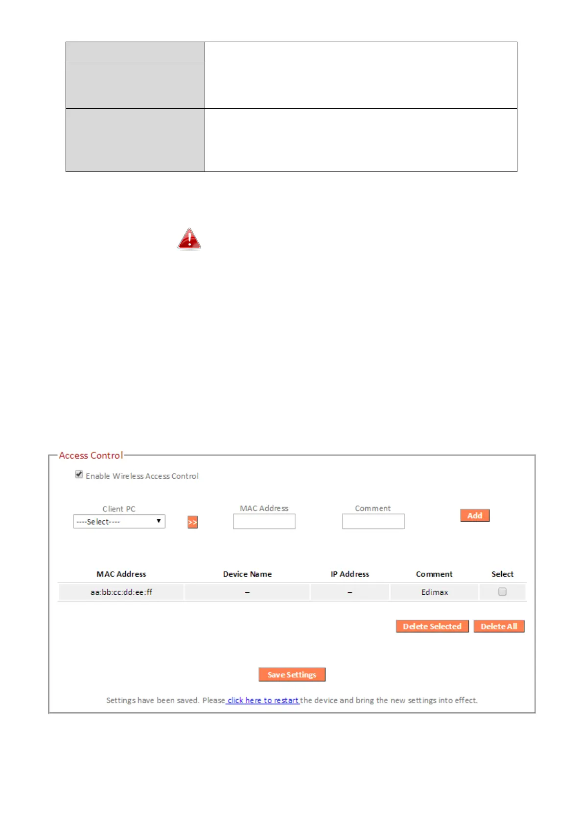 not on the list of permitted MAC addresses attempts to connect to the EW-7476RPC, it will