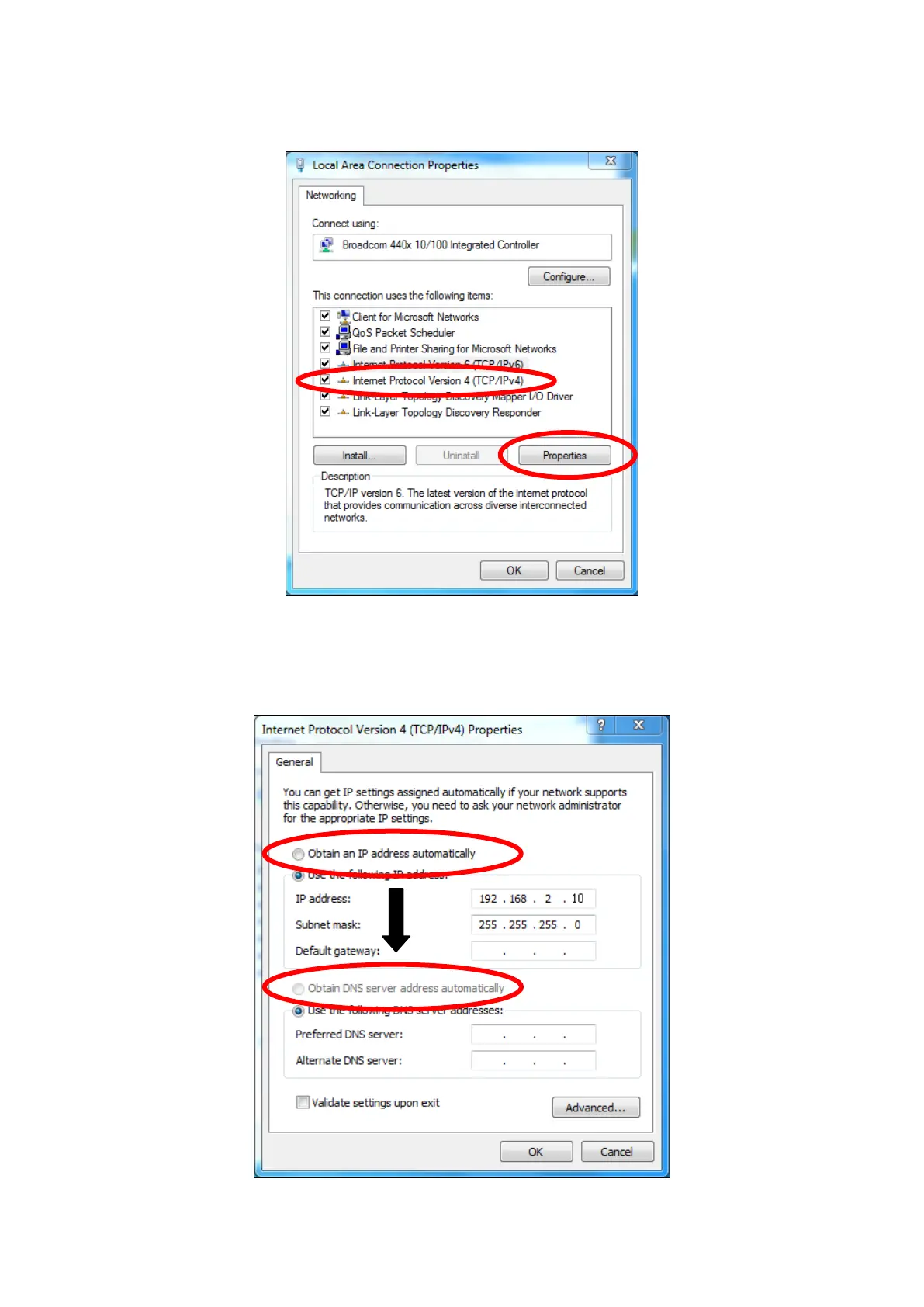 6. Select “Obtain an IP address automatically” and “Obtain DNS server address