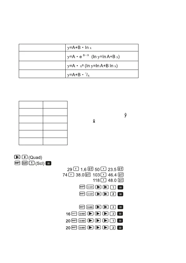 • The regression formula for quadratic regression is: y=A+Bx+Cx