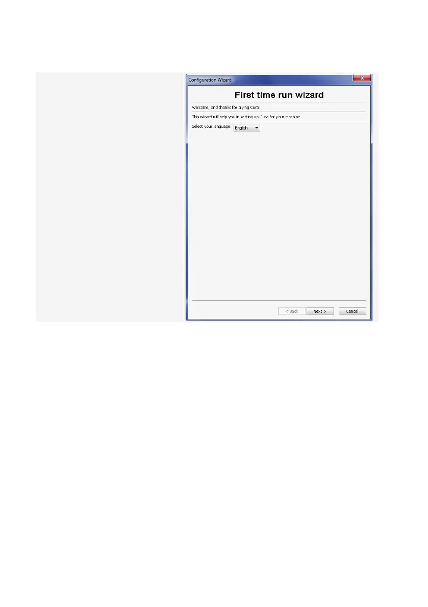 Afterinstallation,the“CongurationWizard“,whichwillguideyouthroughthesetupprocessofthe3Dprinter,appears: