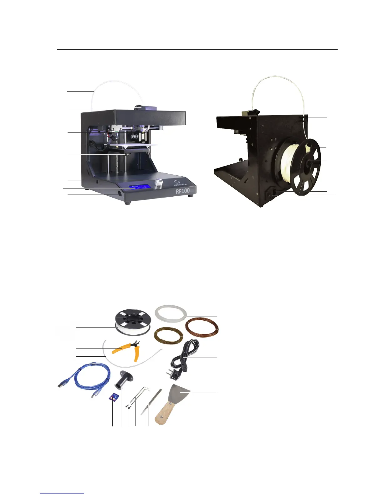 Renkforce RF100 - 9 Operating Elements And Parts; A) Printer (Front and Back); B) Accessories