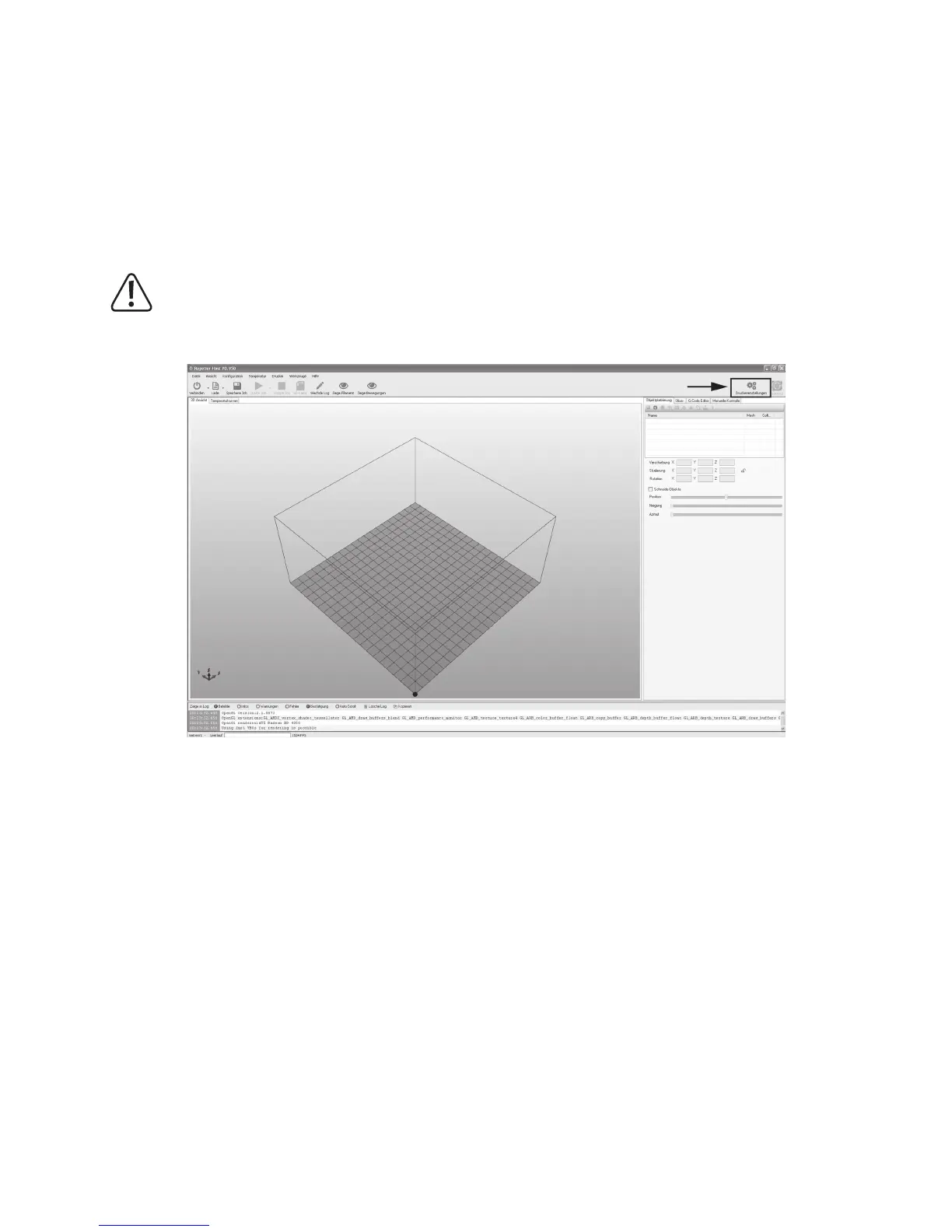 Start the programme Repetier-Host and select printer settings at the upper right in the window.