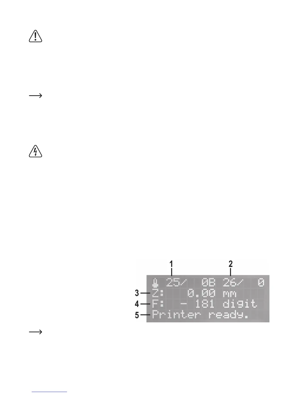 The mains socket to which the 3D printer is connected must be close to the device and easily accessible to quickly