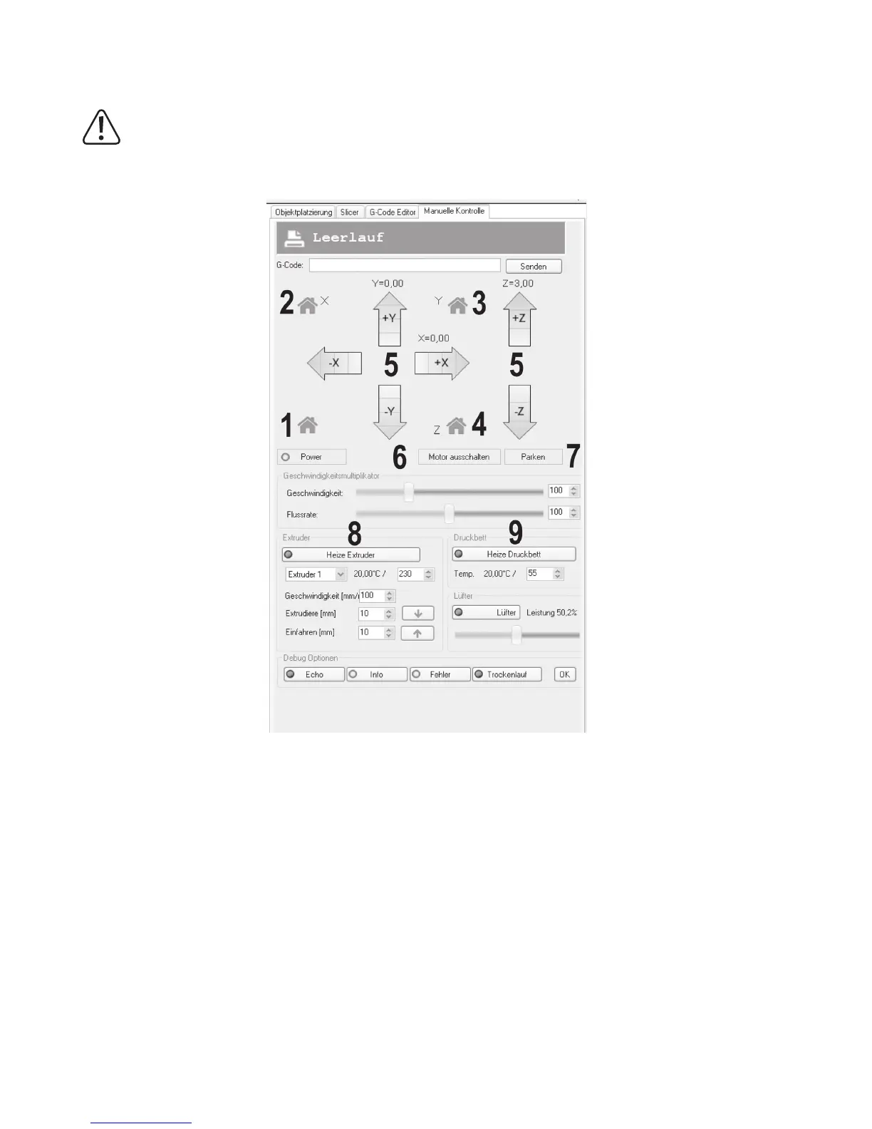 Before trying out manual printer control, the settings for the limit switches for the Z and Y axes must have been per-