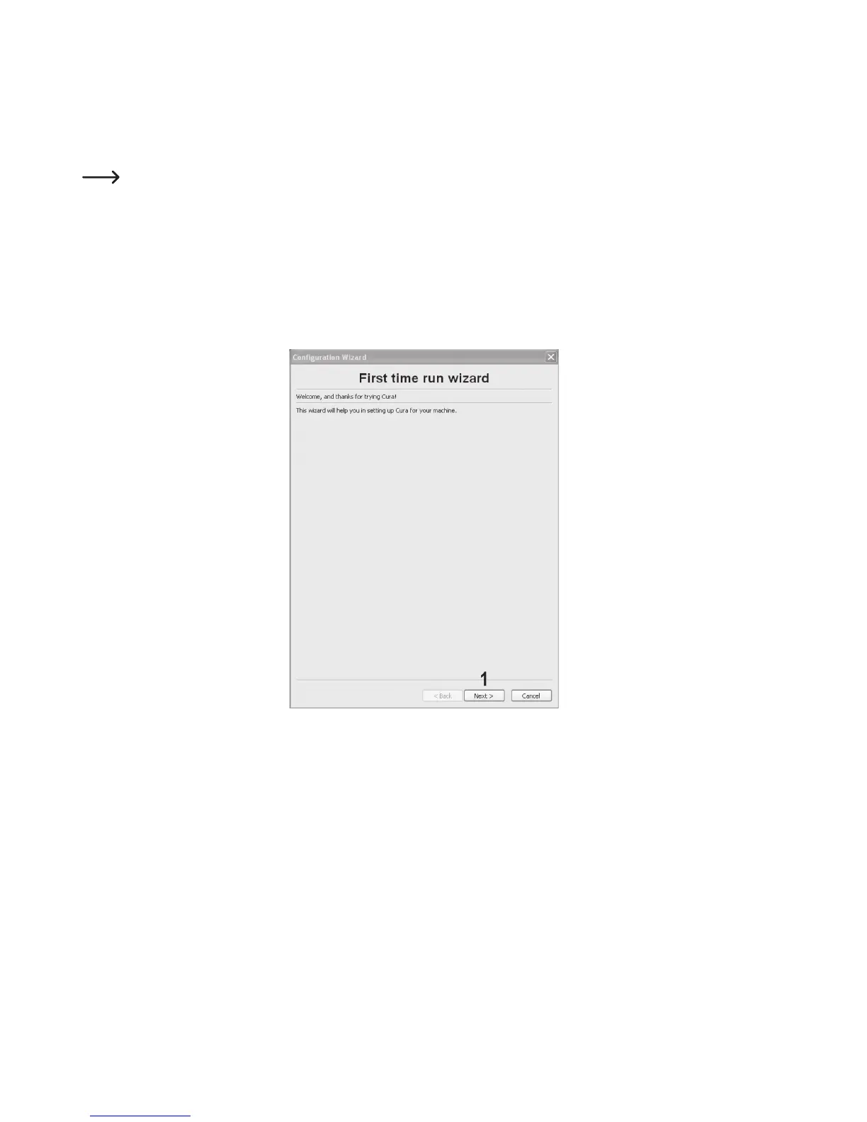 The “Configuration Wizard”, which will guide you through the setup process of the 3D printer, appears:
