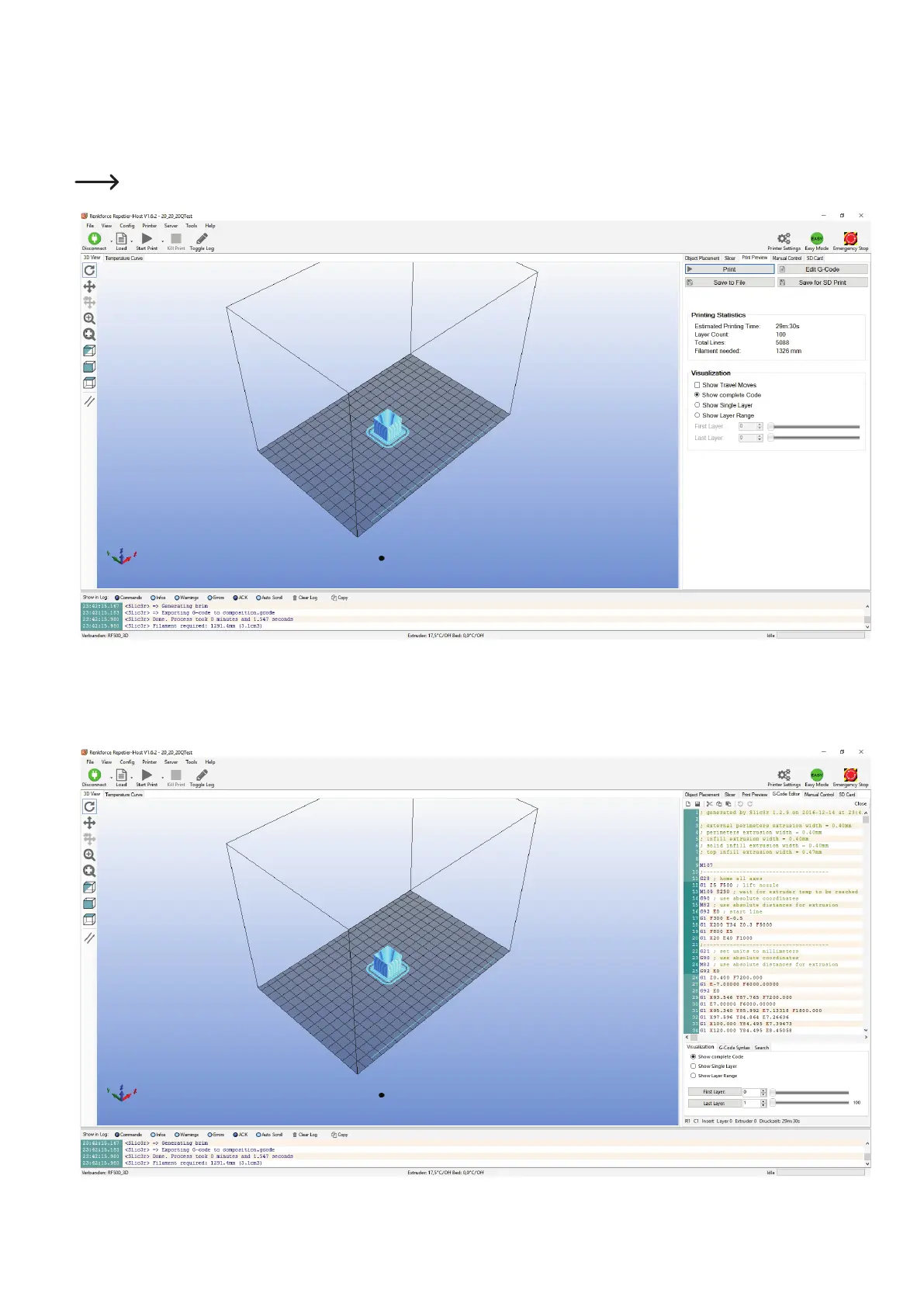 If you click "Edit G-code"attheupperright,theG-codeeditorwillopenandtheG-code(thelayerdescription)willbedisplayed.Thecontrol