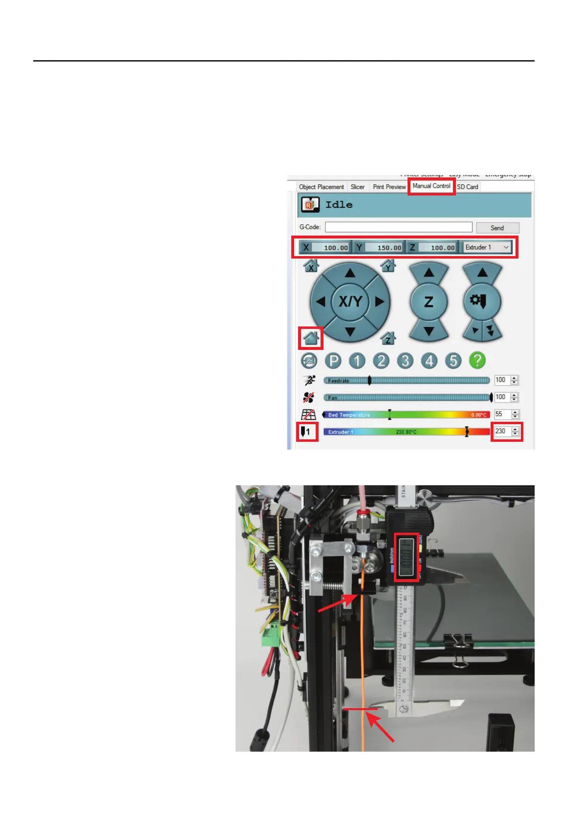 • Heatuptheextrudertoprintingtemperatureandinsertalament.