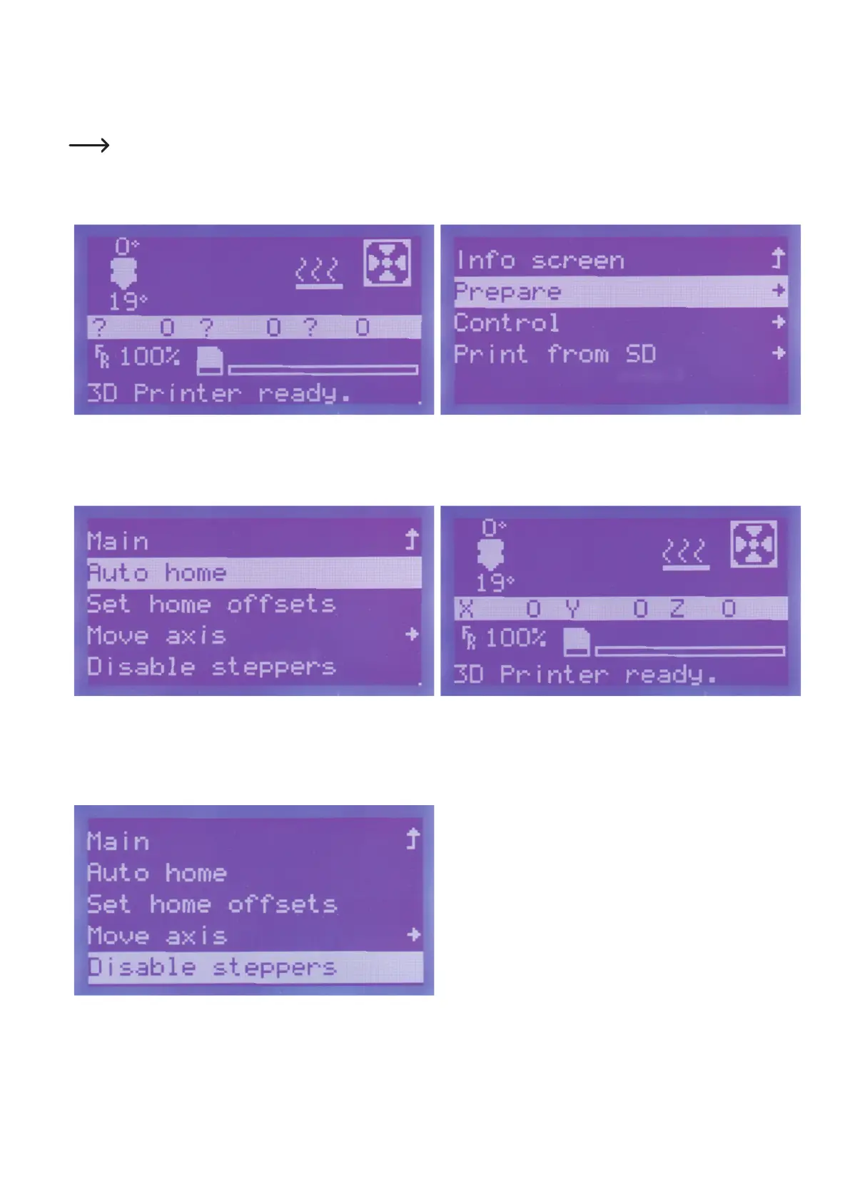 Go to the menu "Prepare" and navigate to item "Disable steppers".