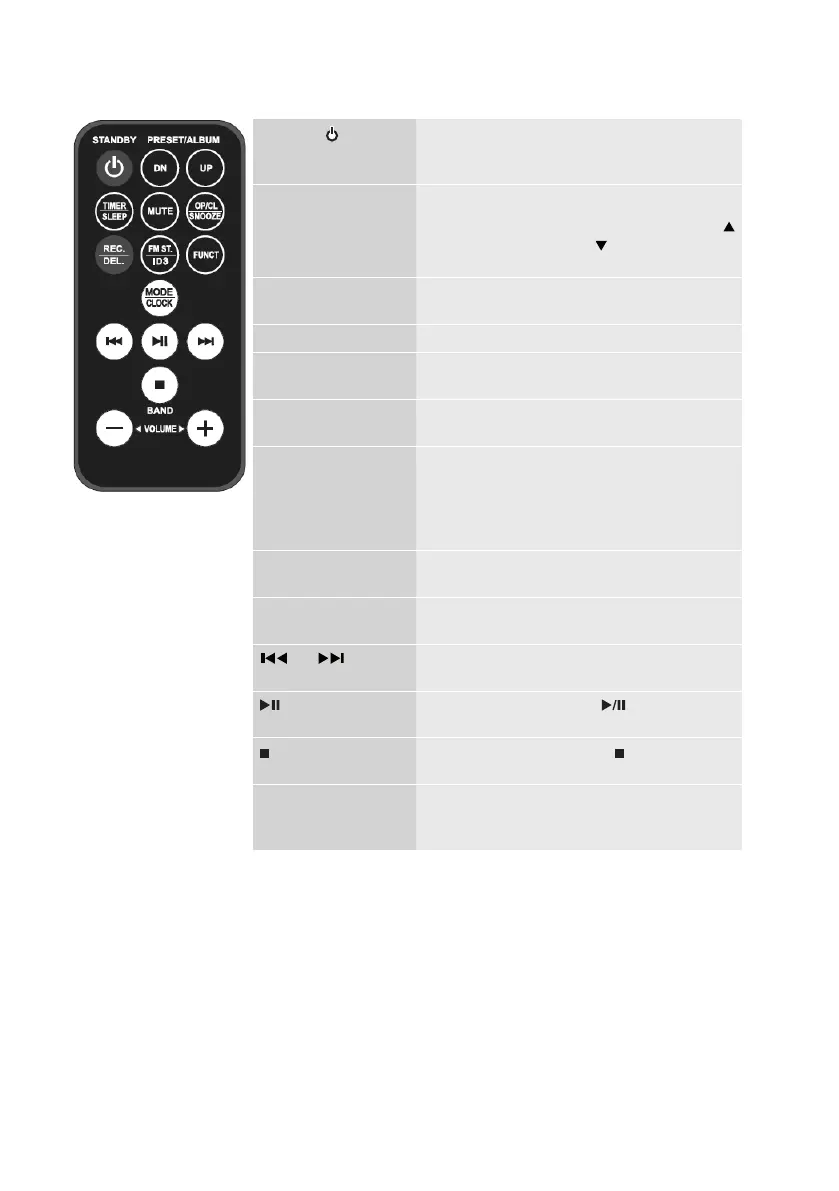 OP/CL/SNOOZE Opens/closes the CD drive, snoozes the alarm for 10
