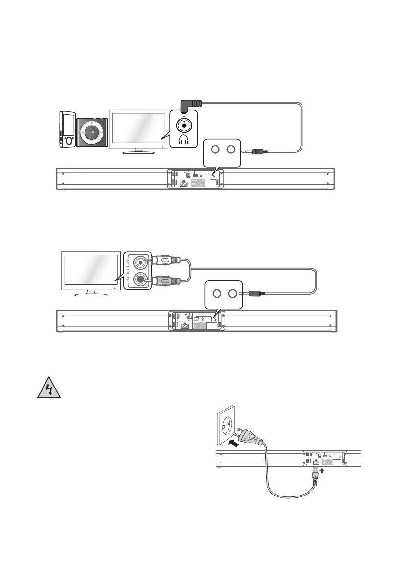 TV Gerätes oder einer anderen Audioquelle (z.B. Smartphone) mit den Buchsen AUX 1 (14) oder AUX 2 (15)