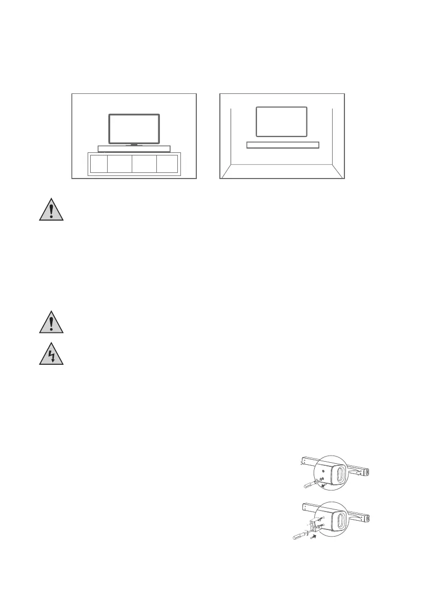 • Placez la barre de son TV sur une surface stable et horizontale.