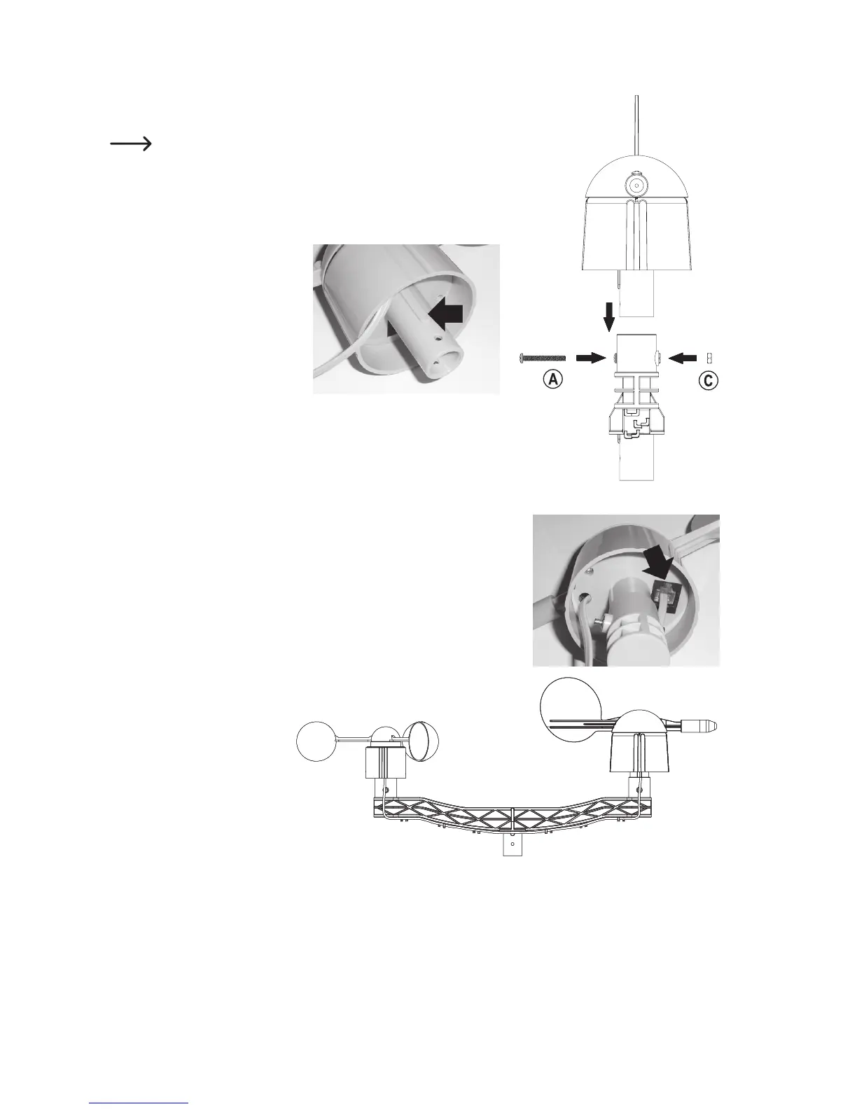 Fasten the wind direction sensor to the plastic holder with a long screw (A)
