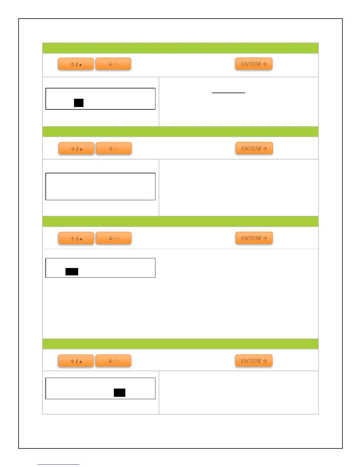Use to cycle through the screens. Press to select