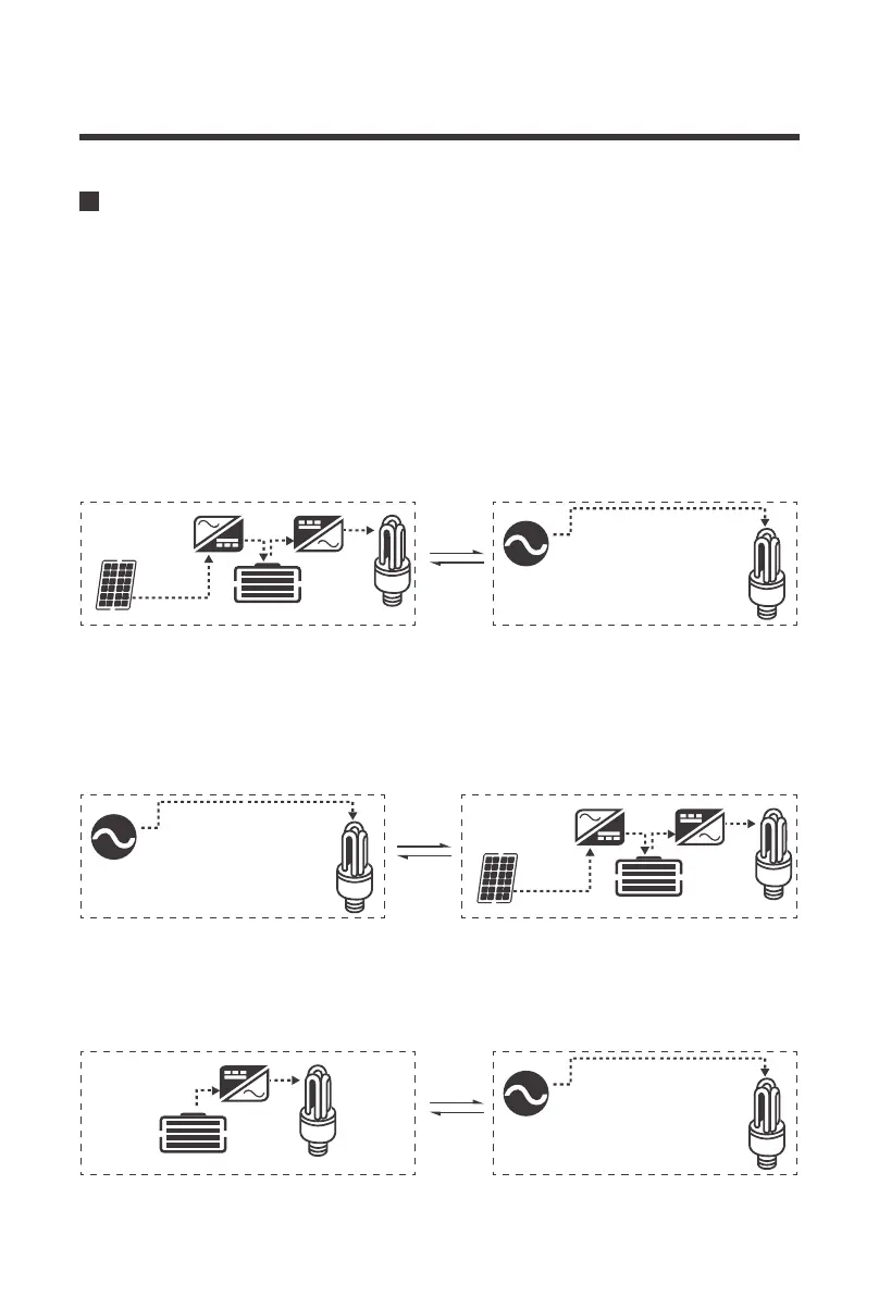 The solar inverter has 3 working modes that dictate how the incoming power is used to power