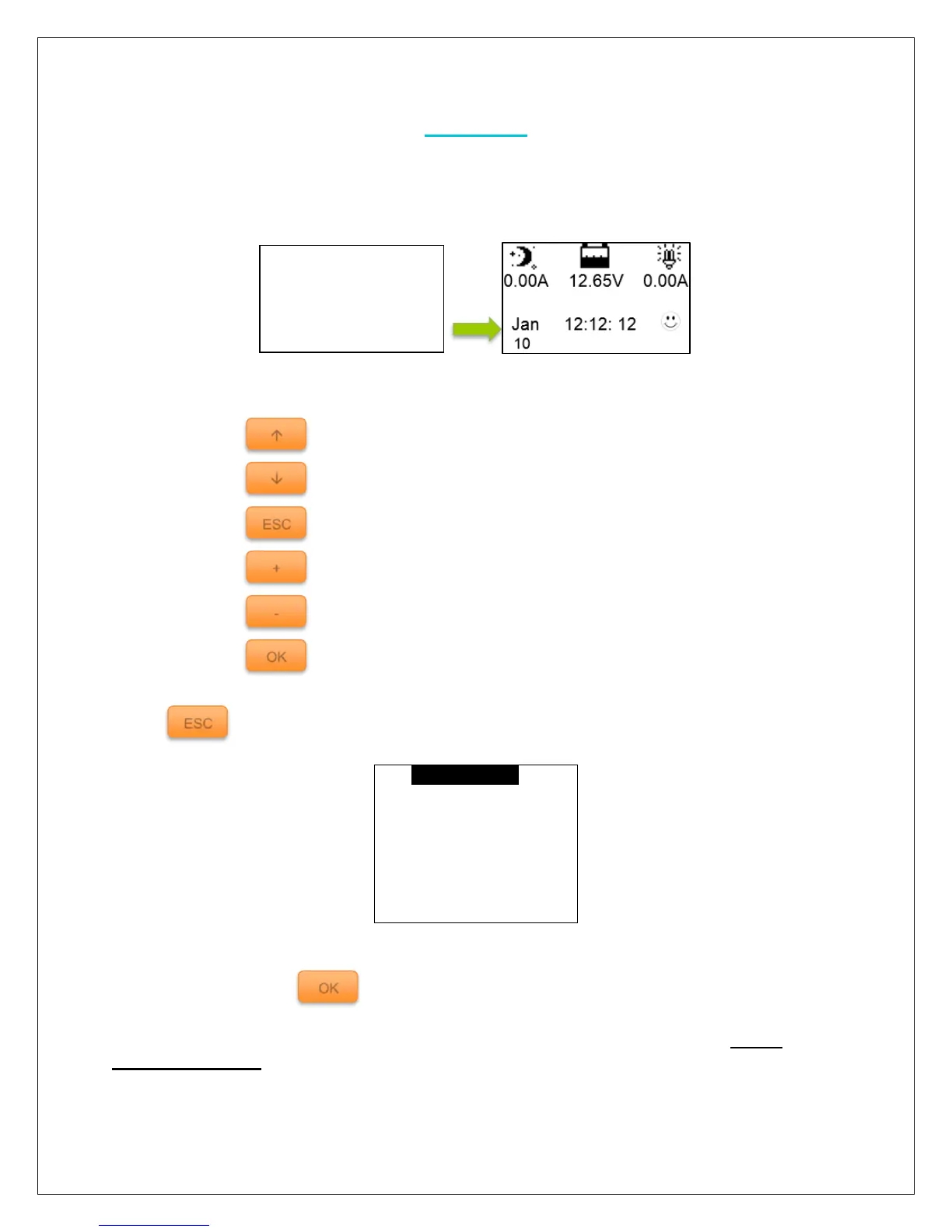 charge controller’s rated parameters, and finally the default monitoring screen.