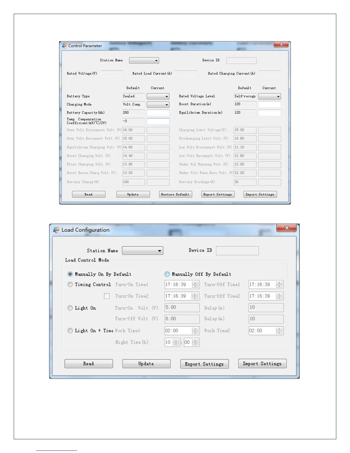 Renogy Commander Series - Control Parameter Settings; Load Configuration Options