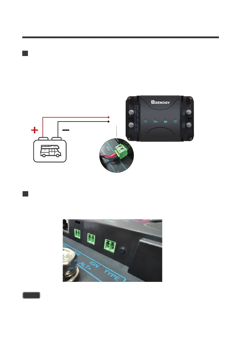 Connect the Battery Voltage Sensor connector to the BVS port. Connect the positive line to the