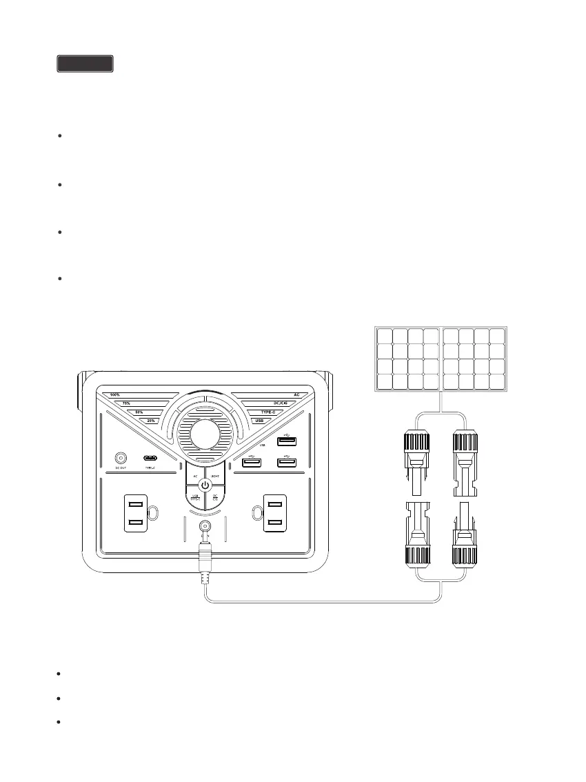 Use a MC4 to 5.5mm DC adapter cable (not included) to connect the solar panel to the DC Input Port of your