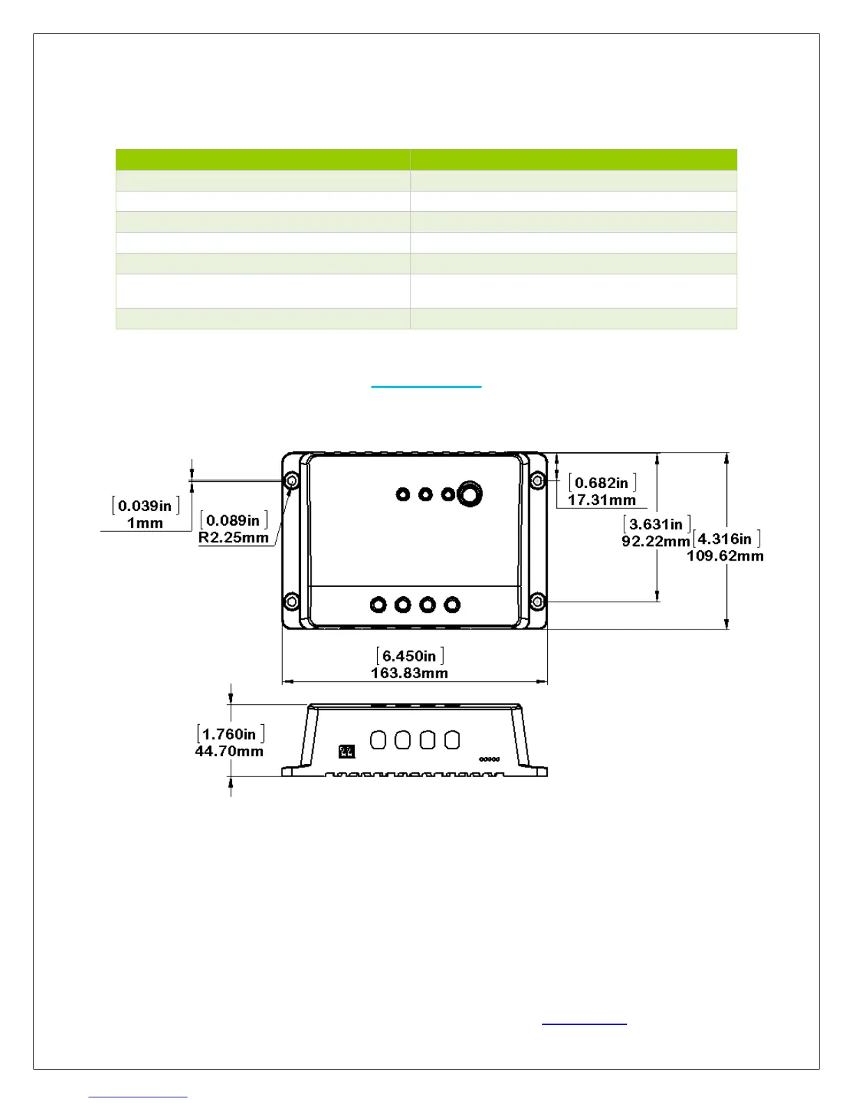 Renogy Wanderer 30A - Mechanical Specification; Dimensions