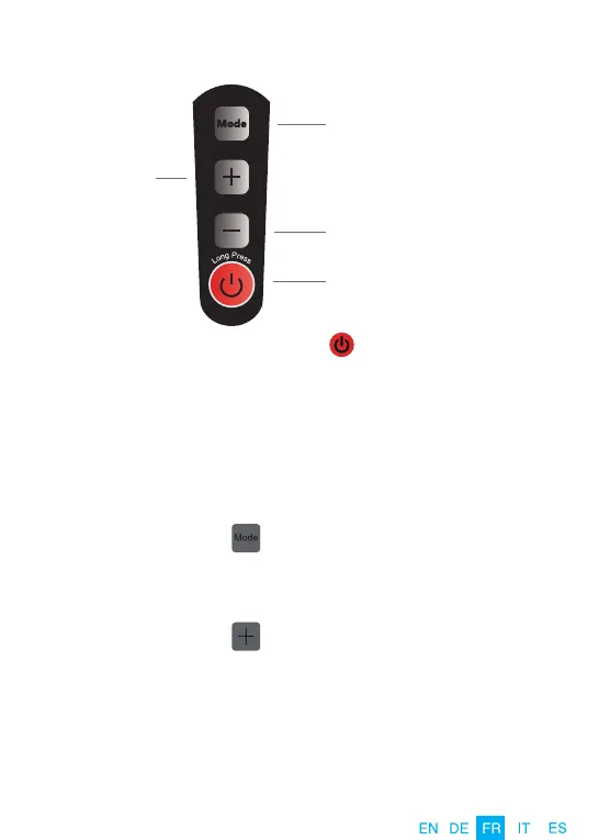 3. Appuyez sur le bouton “ ” pour augmenter l'intensité de la