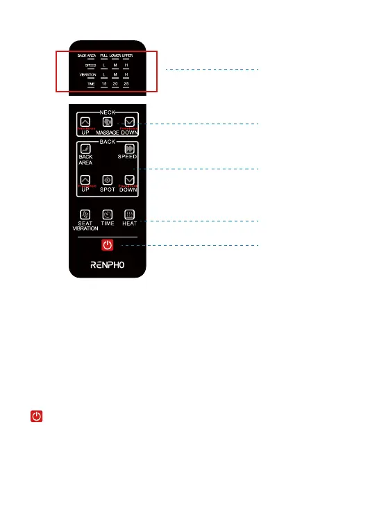 “ ”: Press to turn the massager on (indicator light will turn on).