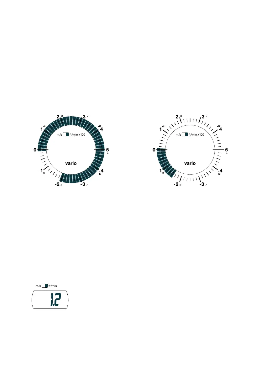 Vario-Display, while the averaged rate of climb or descent (within