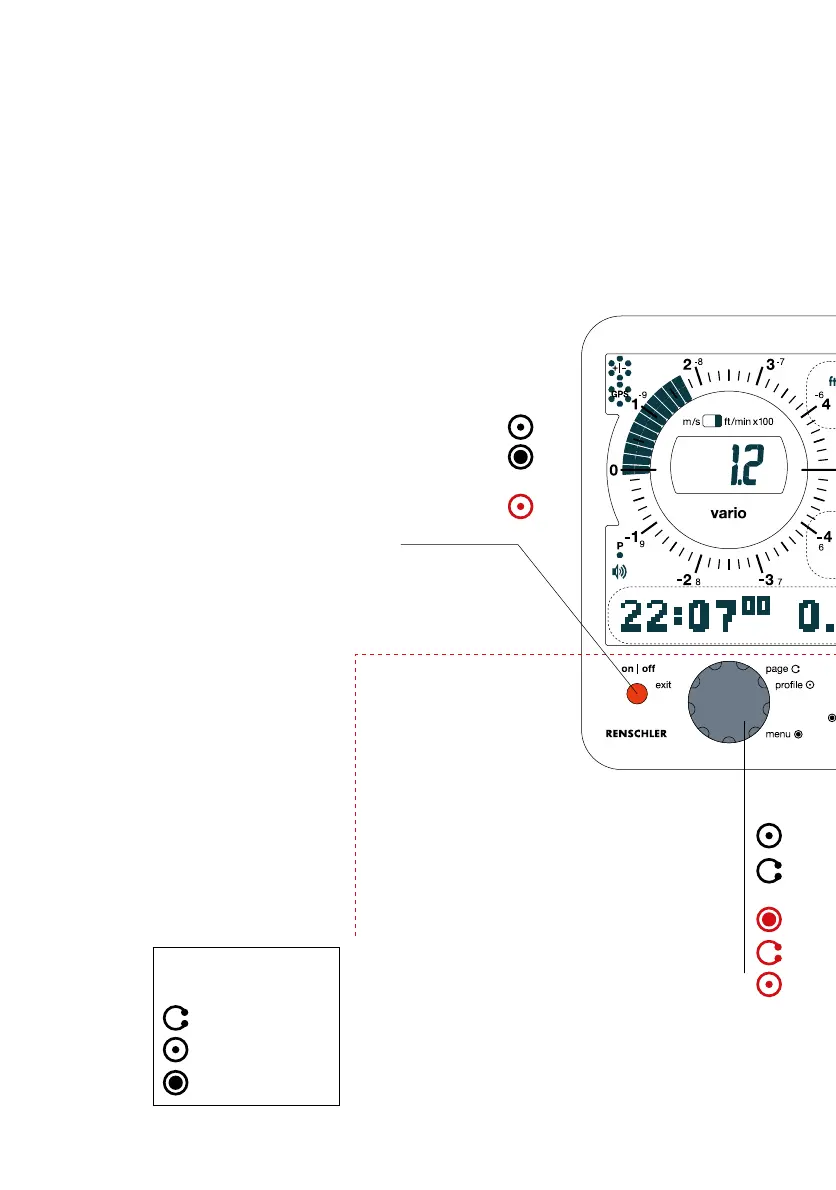 A long push on the button opens the menu