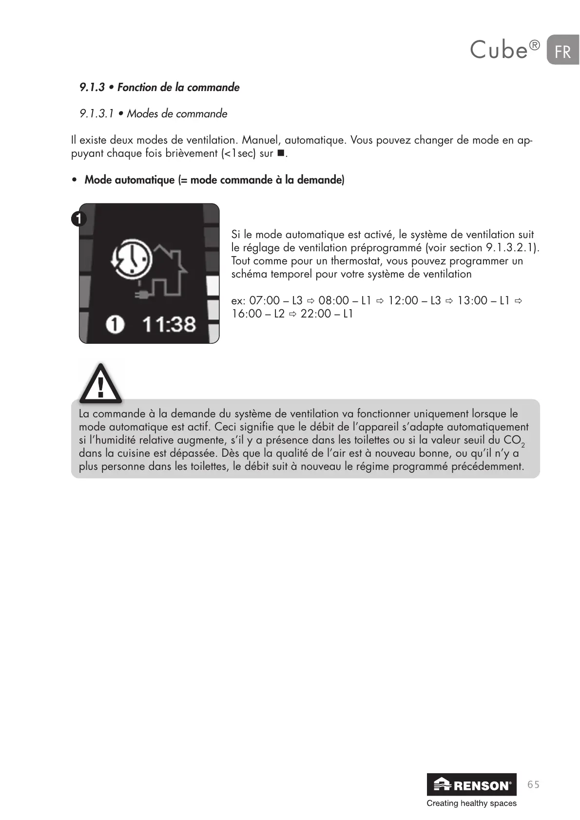 La commande à la demande du système de ventilation va fonctionner uniquement lorsque le