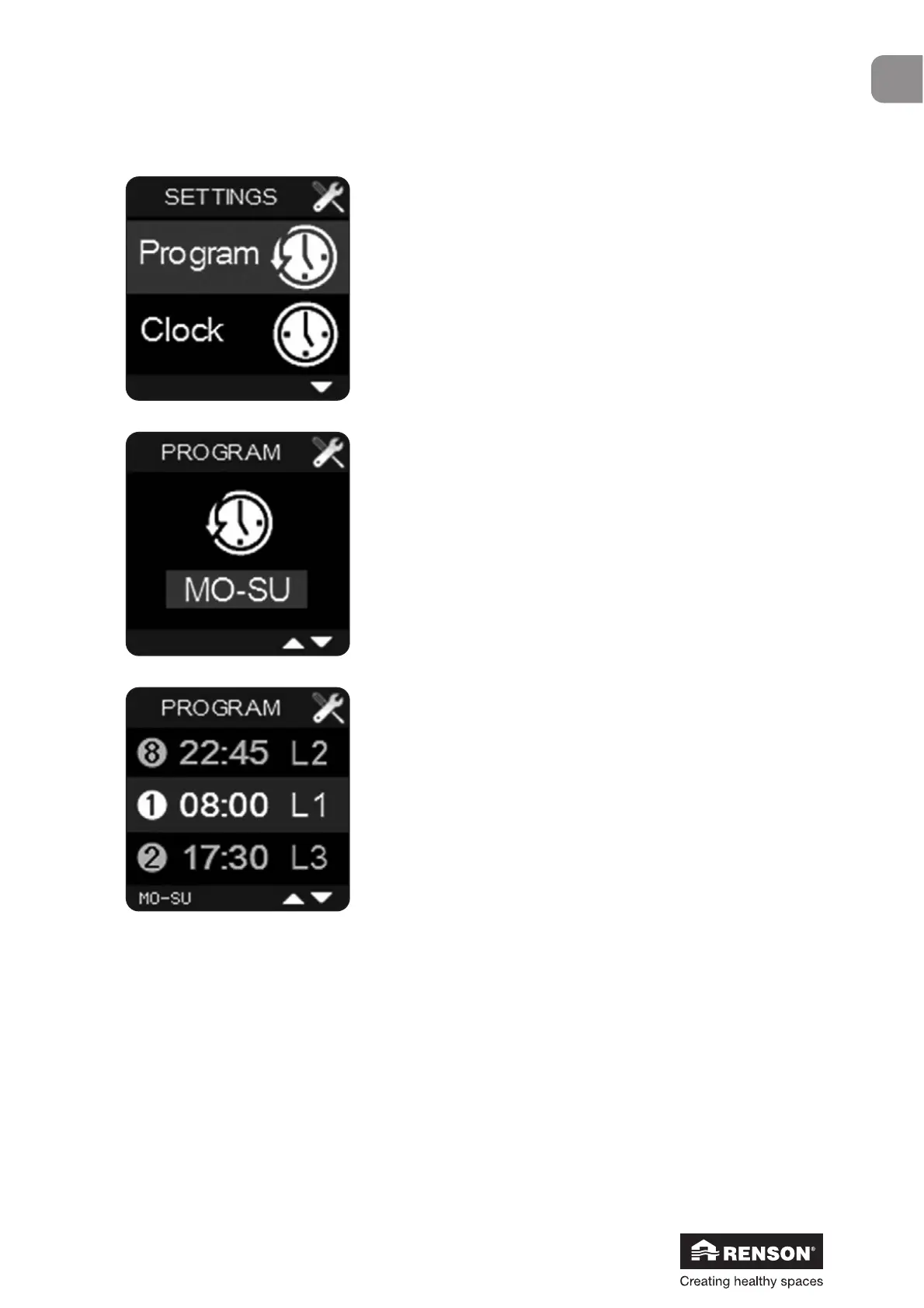 Pour quitter le menu ‘Program’, maintenez la touche enfoncée pendant 3 minutes ou appuyez