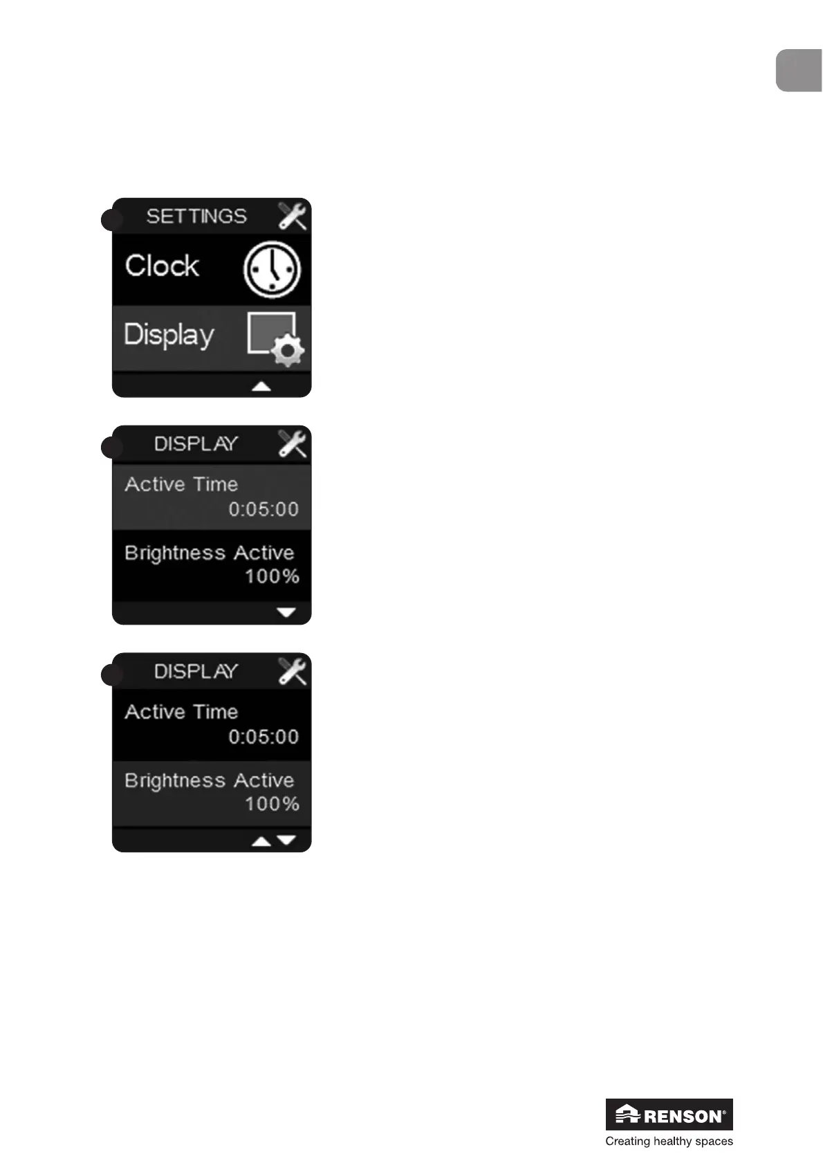 Sélectionnez ‘Display’ dans le User menu et confirmez avec .