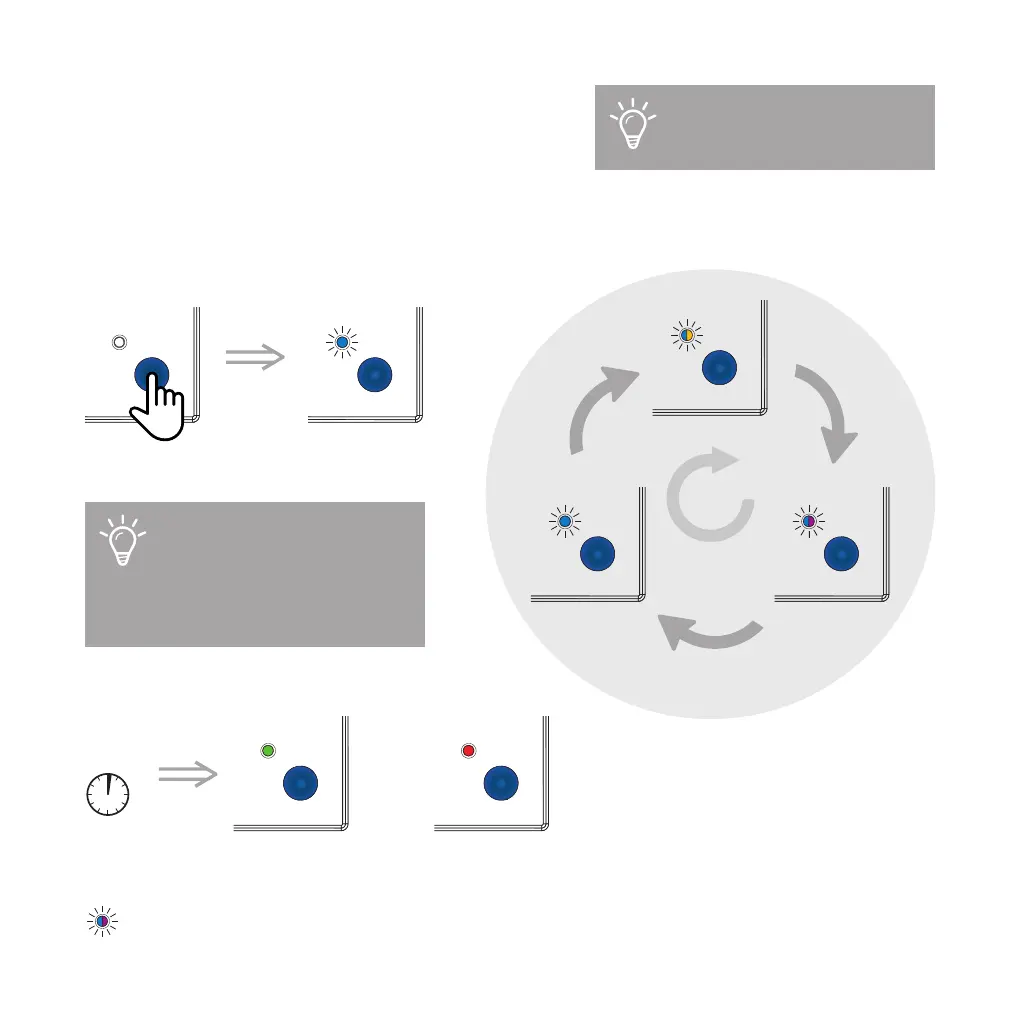 Halten Sie den Knopf gedrückt, bis die LED blau blinkt. Durch erneu-