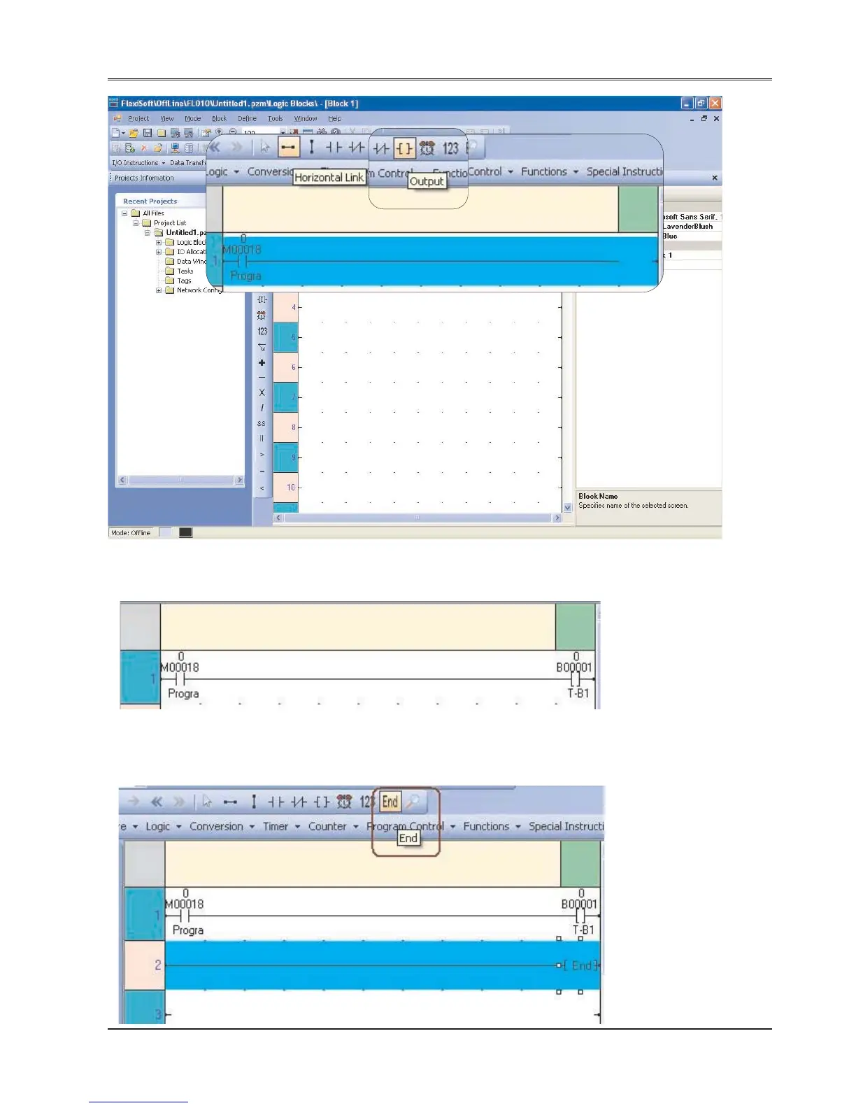 Complete the rail using “Horizontal Link” command, then put “Output” command.