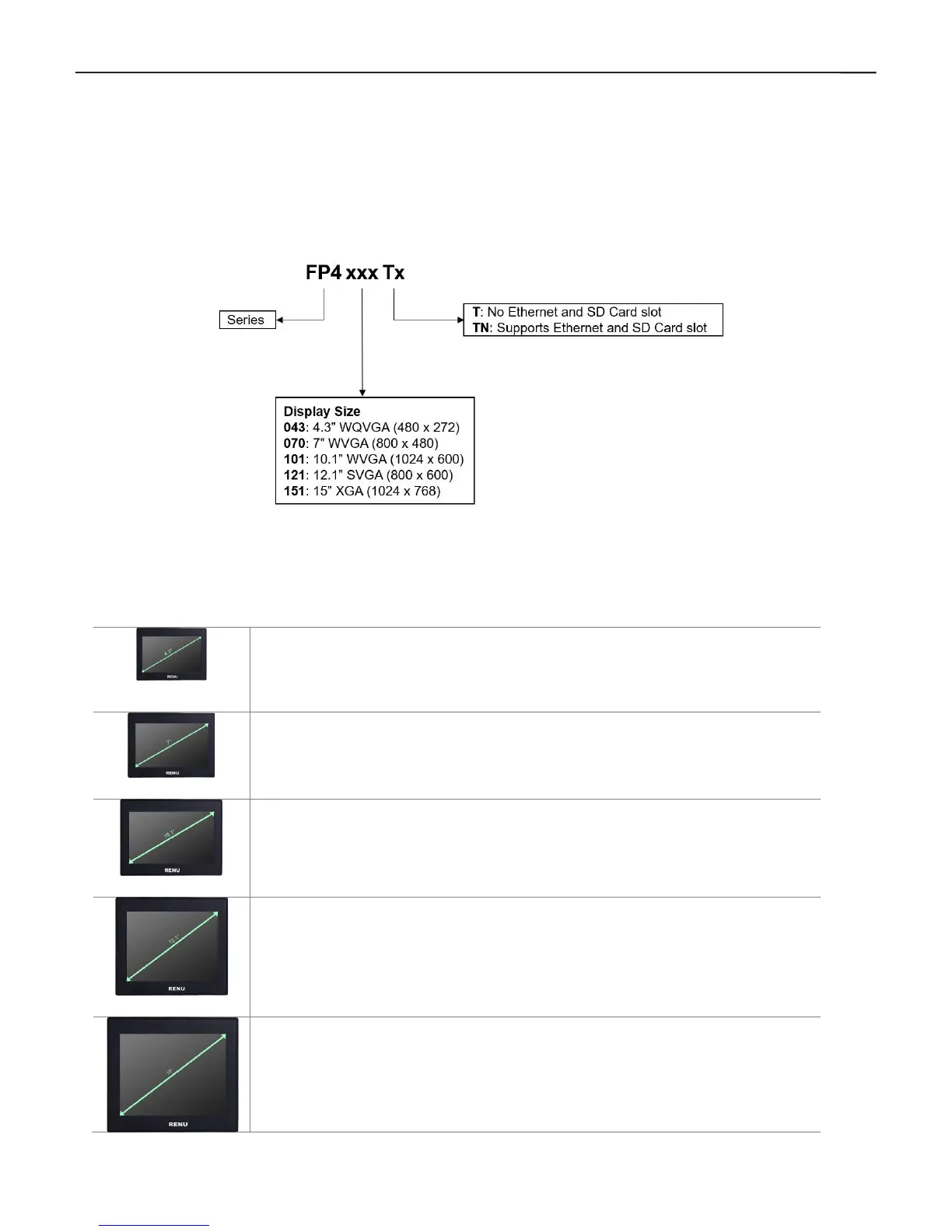 FP4 series has 5 models, depending on display size and each model has two variants, based on Ethernet