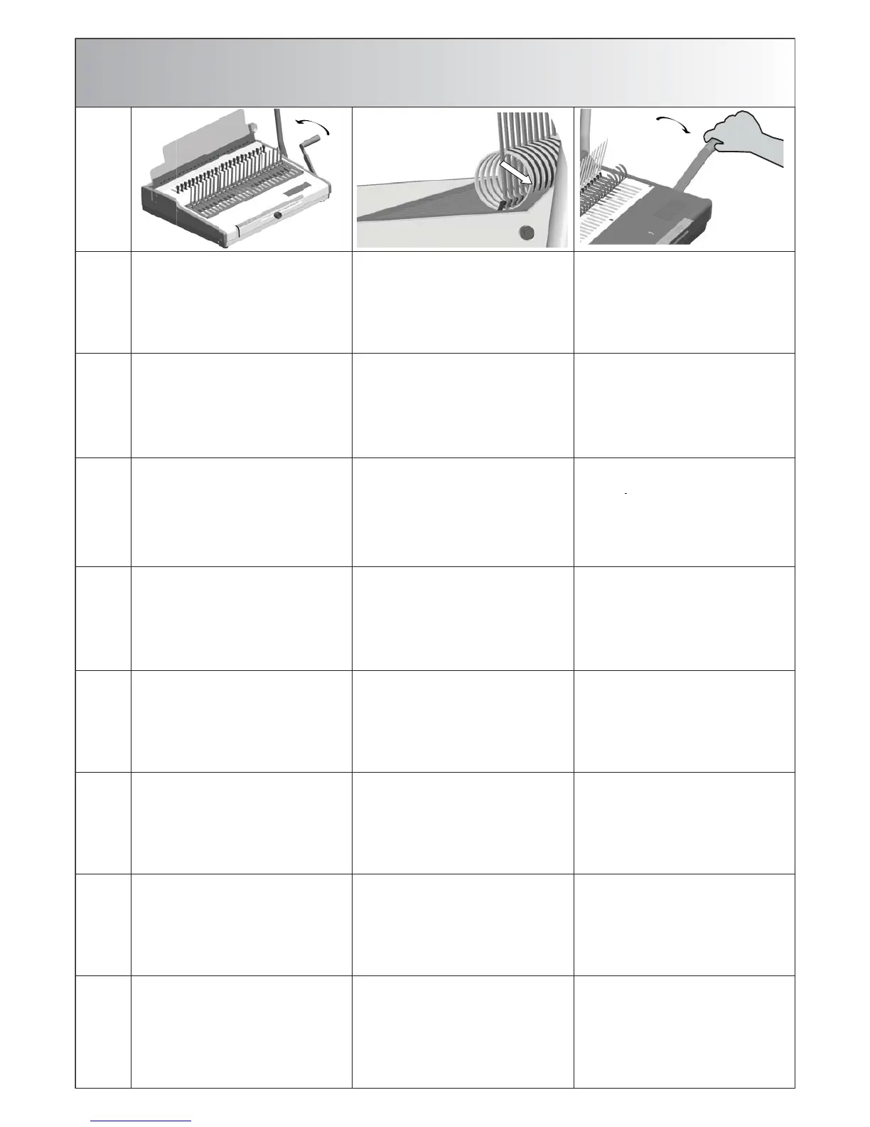 EINLEGEN UND ÖFFNEN DES BINDERÜCKENS ● INSERTING AND OPENING OF COMBS ●