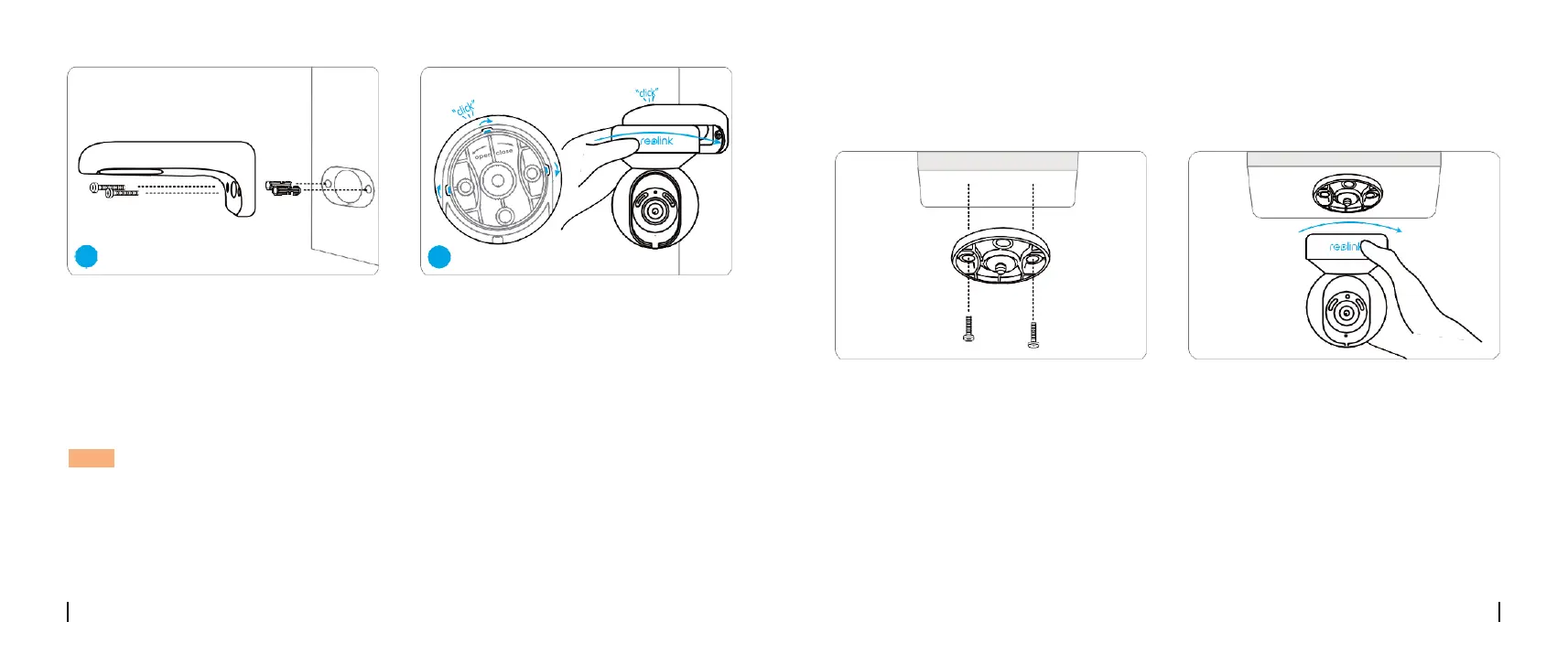 lnstallare la base al soffitto. Allineare la telecamera con la base e girare la telecamera in senso