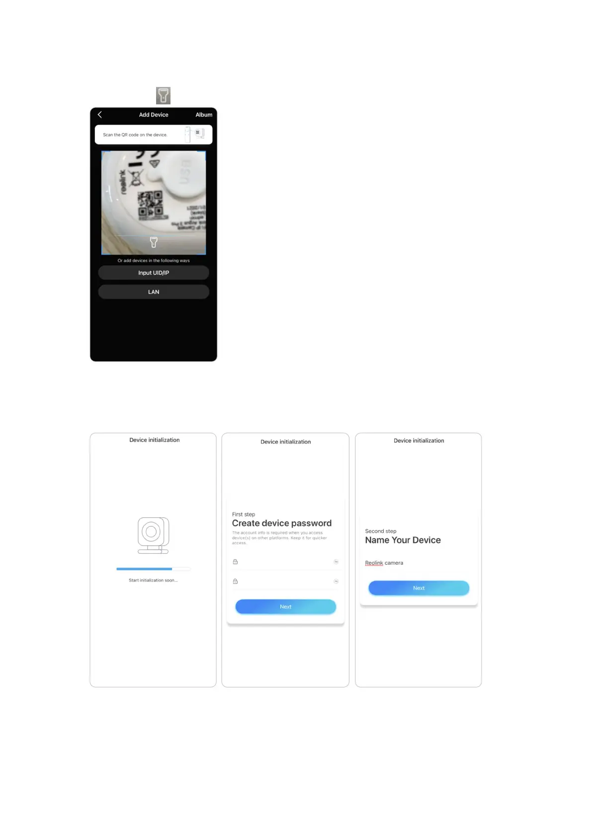 4. You may initialize your camera: Create device password and Name your device.