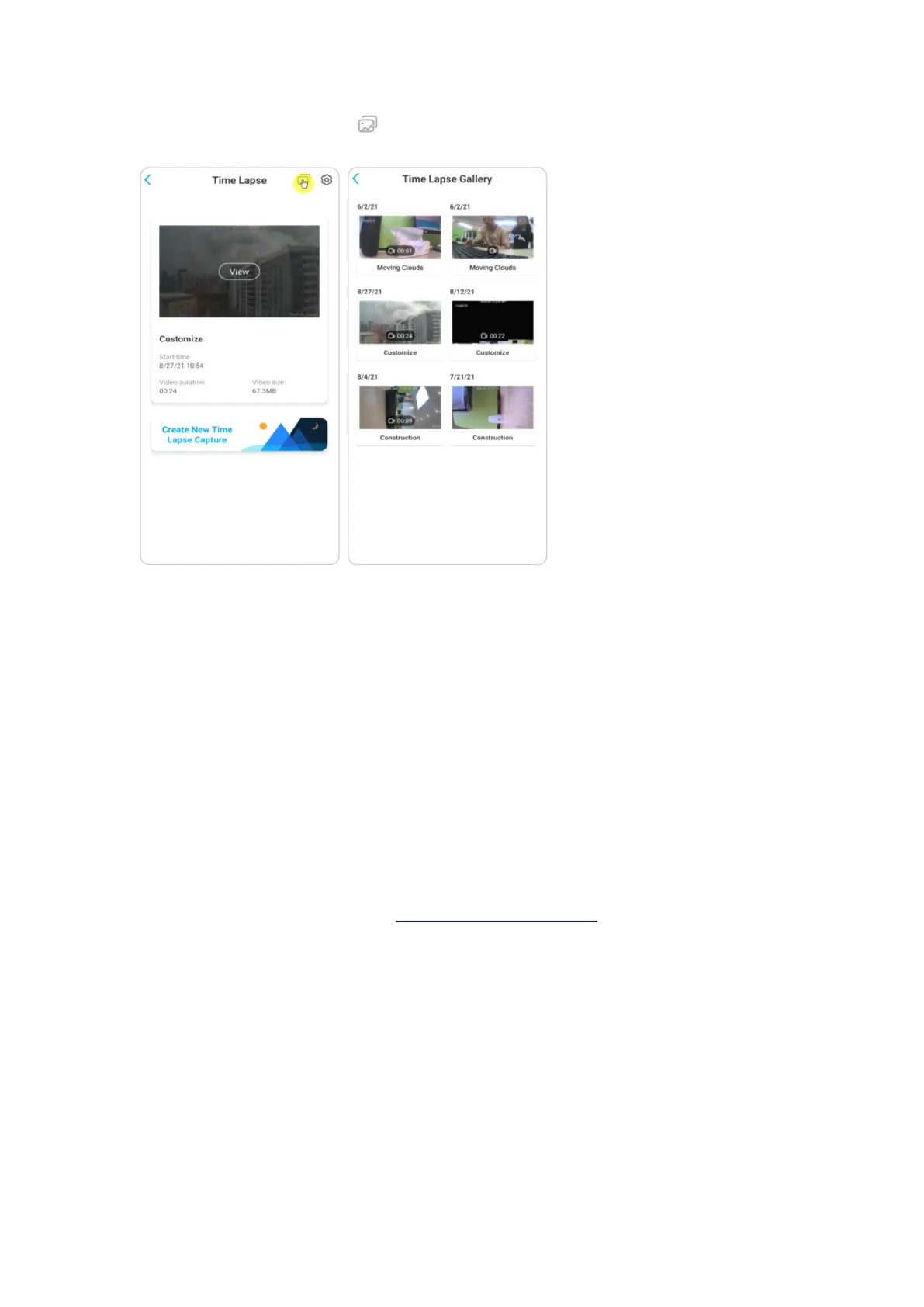 7. Tap on the pictures icon to view the Time Lapse Gallery. Here you can view